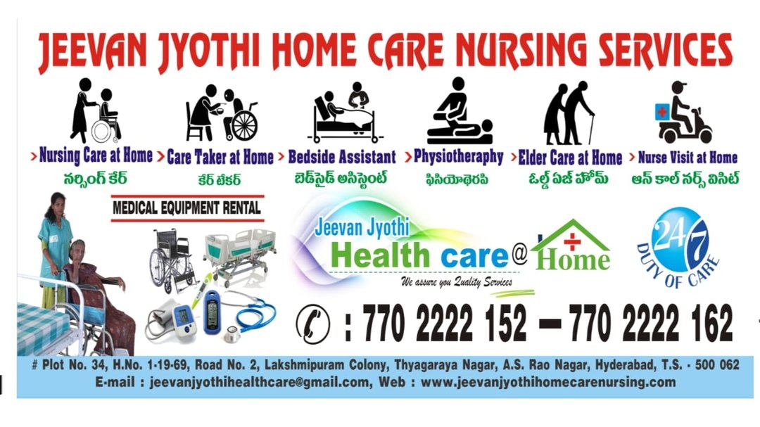 Welcome to JEEVAN JYOTHI HOME CARE NURSING, your trusted partner in home care services in Secunderabad, Telangana! π‘π Our team of dedicated caregivers provides compassionate and professional nursing care right at the comfort of your home. With a primary focus on delivering personalized care, we ensure that your loved ones receive the attention and support they deserve. Let us help you create a safe and nurturing environment for your family members. Contact us today for expert home care services that bring comfort and peace of mind. #HomeCare #Secunderabad #Telangana #NursingCare ππ¨ββοΈπ©ββοΈ